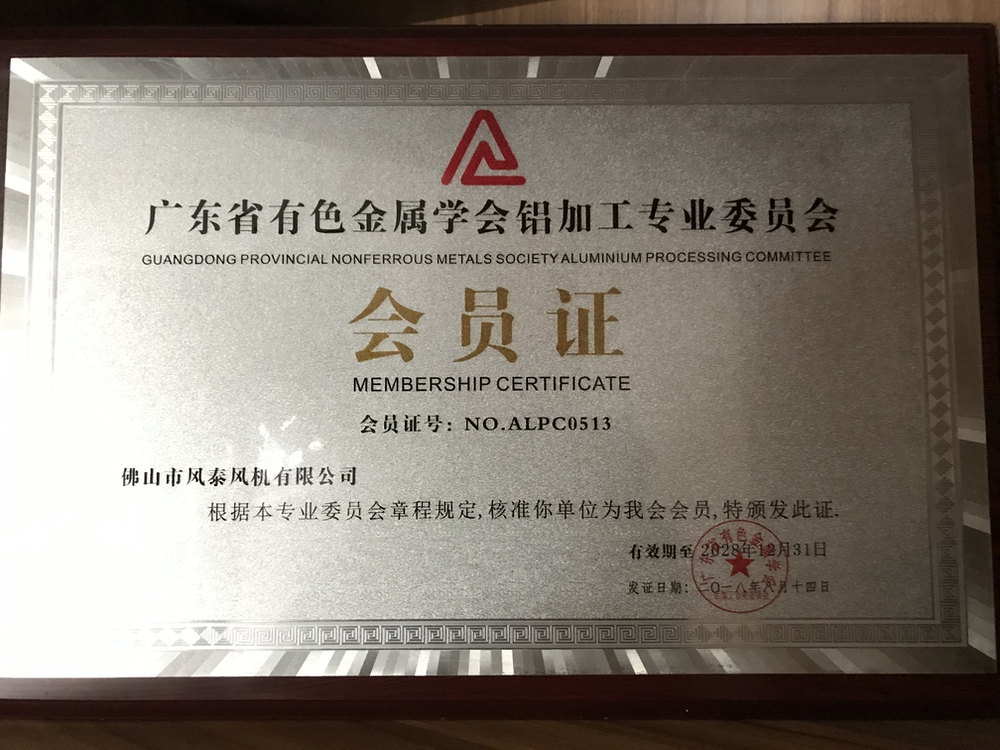 中國(guó)通用機(jī)械工會(huì)協(xié)會(huì)風(fēng)機(jī)分會(huì)會(huì)員證書(shū)